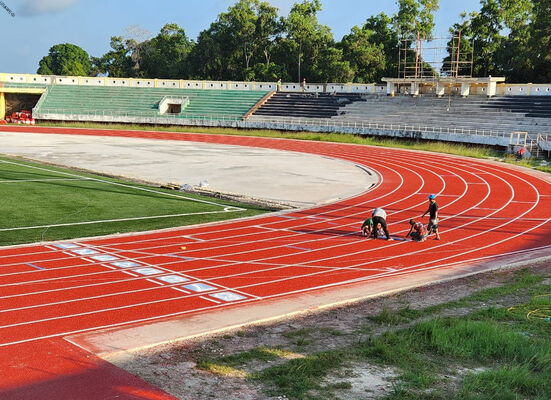 Material de superfície de pista de poliuretano plástico semi-prefabricado e ecológico para estádios